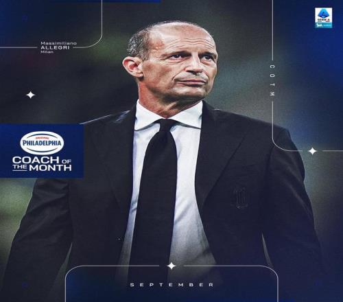 雷速體育10月10日宣 根據(jù)意甲聯(lián)賽官方的消息,AC米蘭主教練阿萊格里當(dāng)選為了意甲9月最佳主帥。