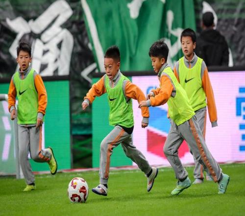 新京報訊(記者楊菲菲)10月26日晚,在北京工人體育場中超聯賽北京國安對陣青島海牛比賽的中場時分,北京40名足球少年走上賽場,用精準的傳遞、靈活的盤帶、充滿自信的射門,生動詮釋了校園足球的靈動與進取。這場別開生面的“班超進中超”活動是北京市“校園足球主題月”的重要環節。