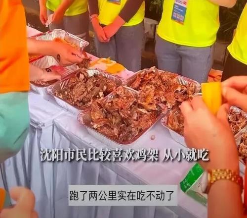 為了能回應跑者和贊助商的熱情(鈔能力),各大城市各顯神通。最出圈的方式是把馬拉松變成超長流水席,力求讓跑者跑完胖三斤,還允許連吃帶拿,因此不少人感慨:跑一場馬拉松,最累的是腮幫子。