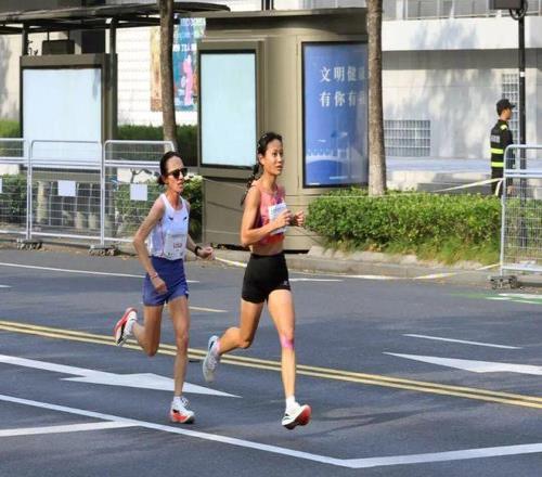 早晨7點的杭州,氣溫15度,相較更寒冷的西安,朱卿明顯感覺到今天的肌肉跑起來完全不一樣——有知覺,腿也沒有打飄。前5公里,朱卿習慣先看看感覺,也按照自己計劃中前半程76分到77分中的目標去跑。因為知道后半程有爬升不好跑,所以她想著那就爭取跑個235左右。但是沒想到跑了大概3-4公里時,一位澳大利亞的跑者上來了,一直位于朱卿之前4-500米,而這也反而給朱卿帶來了動力,“按照她PB成績來的話,她的成績比我好太多了。”在此前,還有三位水平更高的外籍黑人選手,從出發前就已經沒了身影。朱卿想著那就跟著這位白人選手,爭取別被甩太遠,可能后面還有點機會。就在這樣“一直往前看”的念頭中,朱卿跑完前半程用了差不多75分鐘。