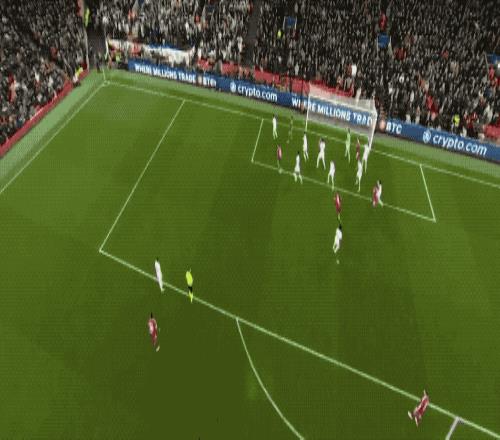 第9分鐘,維爾茨前場(chǎng)積極逼搶,從赫伊森腳下斷球,索博斯洛伊傳球,麥卡利斯特在卡馬文加的干擾下,放了高射炮。