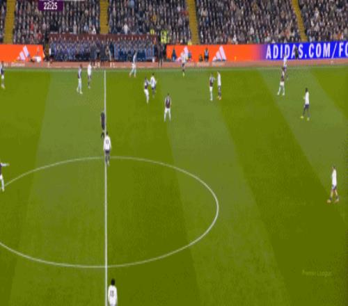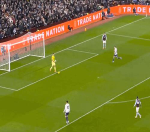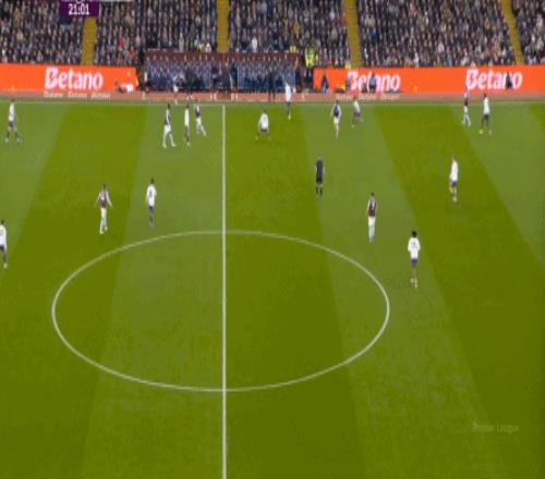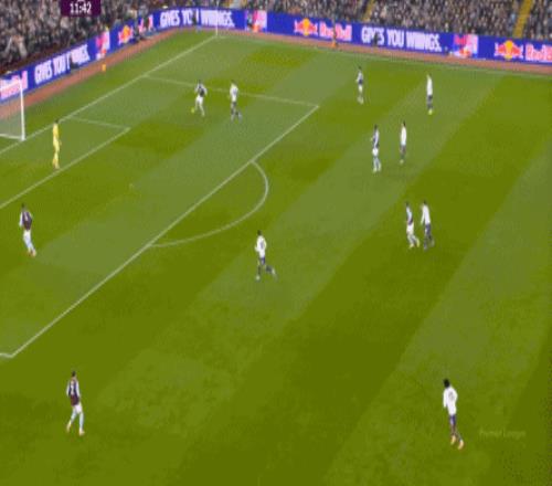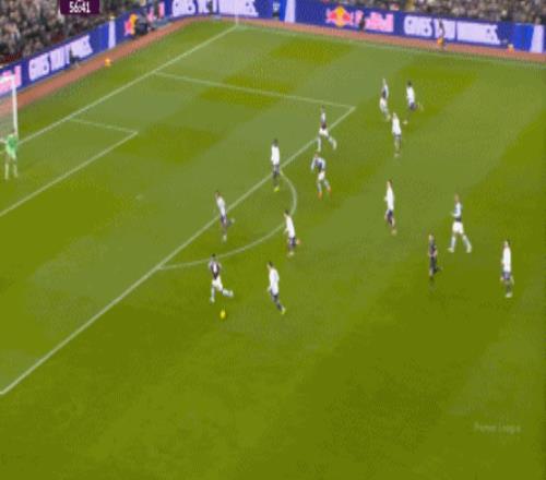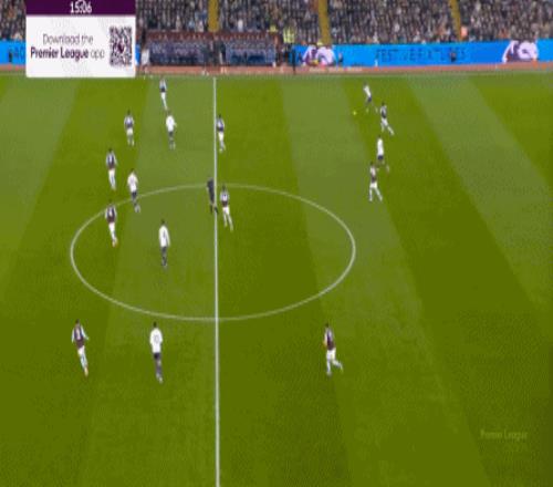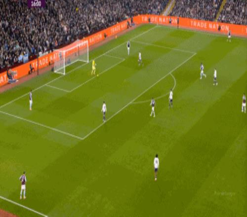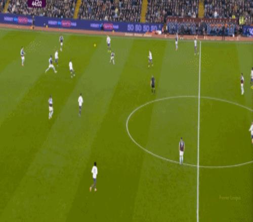 只不過這次的第一輪進攻沒有成功,但在第二輪進攻里,蒂勒曼斯在達洛特并不嚴密的防守下送出傳中,沃特金斯搶出前點,讓球落到了羅杰斯的腳下,然后讓第一球再重現(xiàn)一次: