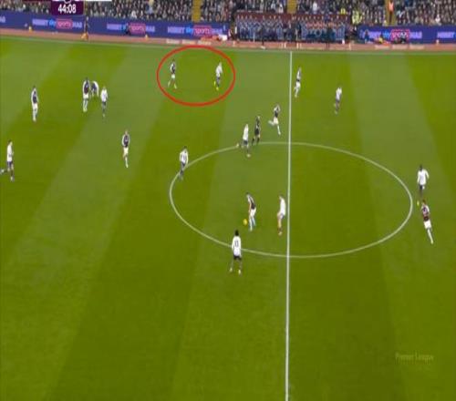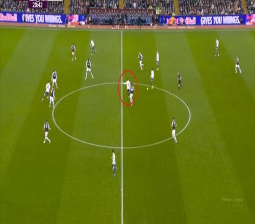 一個年輕中衛(wèi)在壓力下帶球,身側(cè)的隊友都被維拉從身后壓迫,其實只能試著直傳中鋒,然后希望他造個犯規(guī),從而讓海文有時間回位,連庫尼亞都是如此建議的: