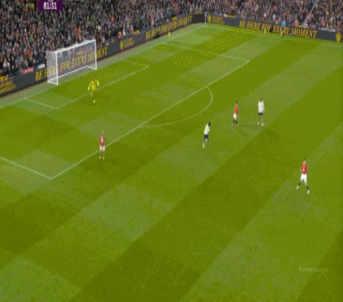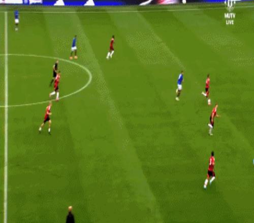 結(jié)果芒特沒有頂住奧納納,麥金可是靠自己的手臂動作頂住了盧克-肖,然后直接斜長傳找到了羅杰斯: