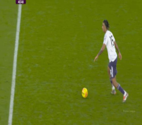 所以在這種情況下,維拉把曼聯(lián)吸引過來,用馬丁內(nèi)斯的大腳找羅杰斯的頭頂,這里被約羅頂了回去: