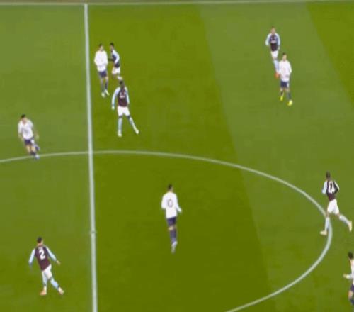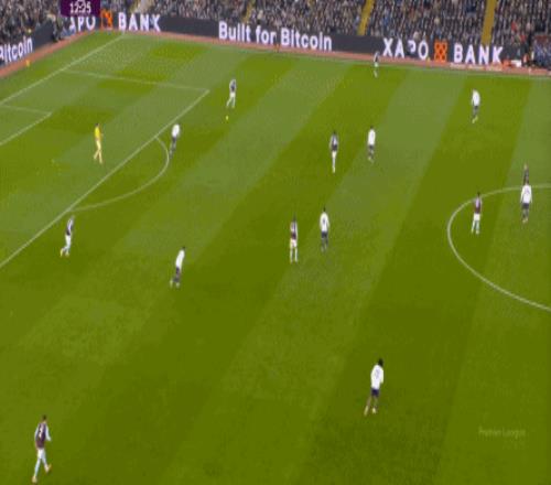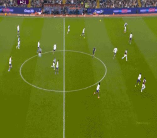 包括第二球也是一樣,前戲依舊是維拉吸引曼聯(lián)壓迫,然后用長球連接前場,還是拉出空當(dāng)之后,由麥金帶出轉(zhuǎn)移到弱側(cè)的進攻: