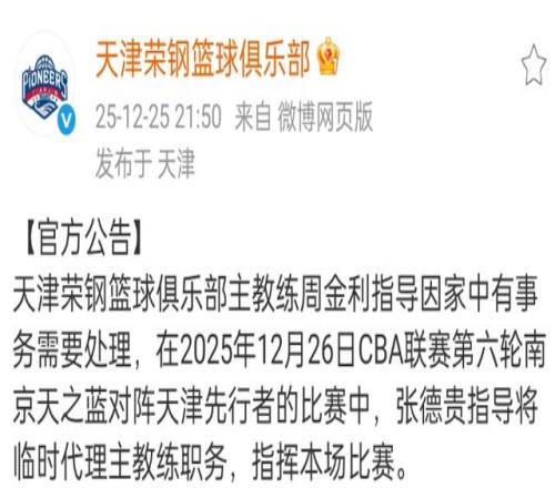 然而老牌球隊天津男籃卻成為了第四支更換主帥的球隊,根據官方公告,主帥周金利因為家庭原因缺席一場比賽,張德貴走馬上任成為球隊代理主帥。天津男籃是目前唯一不勝的球隊,這樣的調整恐怕也是無奈之舉。