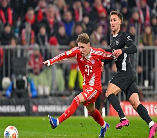 比賽剛開始5分鐘,拜仁就進球了!迪亞斯在左側下底傳中,費舍爾竟然門前把球踢進自家球門。這粒烏龍球讓人感到有些匪夷所思。拜仁取得夢幻般的開局。6分鐘后,奧利塞送出精準長傳球,迪亞斯前插,在禁區內卸下皮球后起腳射門,結果踢偏了。第13分鐘,沃爾夫斯堡扳平比分。佩契諾維奇單刀低射破門。