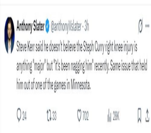 此前因為明尼阿波利斯的暴風雨問題,勇士VS森林狼的比賽延續了一天,實際上庫里在抵達明尼阿波利斯之前右膝就已經有不適感,1月24日訓練后就已經出現癥狀,但庫里還是帶傷打了對陣森林狼的比賽。