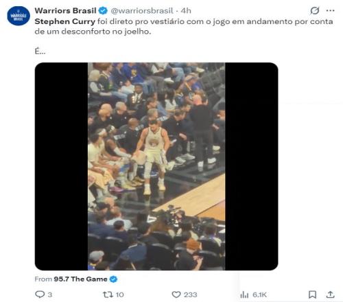 斯蒂芬-庫里在對陣活塞的第三節后段就一直覺得自己的右側膝蓋不舒服,在他命中那個2+1之前他已經多次捂著膝蓋的位置,庫里也一直在嘗試膝蓋的發力感覺。