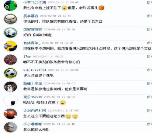 好嘛,輸了也是贏了,果然是贏麻了!難怪看到許利民如此說法,球迷們都忍不住了,“我真是佩服他這張破嘴,臉皮是真厚啊”、“我也有點臉上掛不住了,但是,老許沒事兒”、“現在根本不想別的,就想看看俱樂部能忍到什么時候,這個俱樂部就是個笑話”。