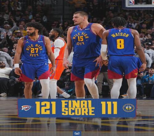 16分的分差并不算太大,但是以約老師和穆雷今天的狀態(tài),掘金也很難翻盤。第四節(jié)還剩3分鐘,雷霆依然領(lǐng)先17分,掘金換下主力球員。全場結(jié)束,掘金111-121不敵雷霆。剛剛?cè)脒x全明星的賈馬爾-穆雷16中4,小哈達(dá)威6中0。