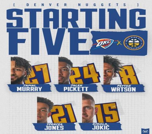 掘金戈登、布勞恩和卡梅倫-約翰遜繼續(xù)休戰(zhàn),雷霆杰倫-威廉姆斯和卡魯索也不能打,兩隊都不是完整陣容。掘金首發(fā):穆雷、皮克特、斯潘塞-瓊斯、沃特森、約基奇。雷霆首發(fā):亞歷山大、卡森-華萊士、多爾特、霍姆格倫、哈滕。