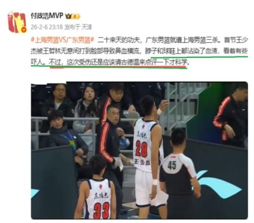 看到這樣的情況,CBA名記付政浩也是發文喊話上海隊外援古德溫:王少杰這次受傷,看著就嚇人,古德溫應該要站出來點評一下才科學……