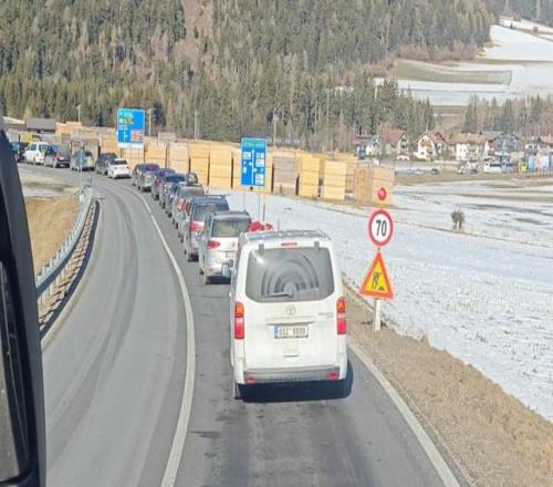 8日,安泰塞爾瓦迎來米蘭冬奧會(huì)冬季兩項(xiàng)項(xiàng)目的首個(gè)比賽日。開賽前數(shù)小時(shí),通往比賽場(chǎng)地所在山谷的唯一一條盤山公路便已出現(xiàn)嚴(yán)重?fù)矶拢囕v排起長(zhǎng)龍,大量觀眾在接駁點(diǎn)長(zhǎng)時(shí)間等候。