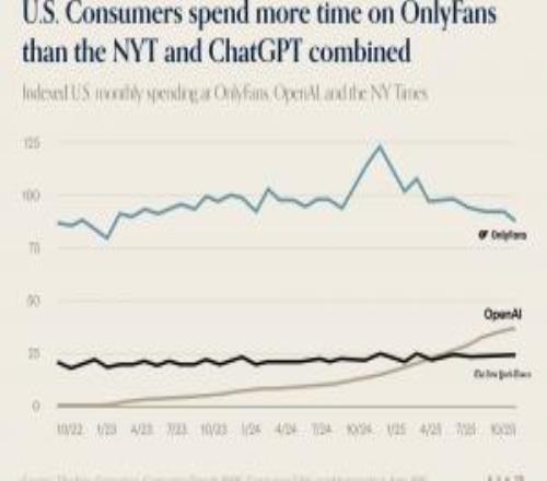 體育資訊02月11日稱 據外媒援引數據顯示,美國消費者在內容訂閱平臺OnlyFans(充斥18+內容)上的支出已經超過OpenAI與《紐約時報》的總和。