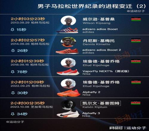 柏林對應(yīng)的關(guān)鍵詞,還有肯尼亞軍團、adidas的adios系列等,帕特里克·馬考、威爾遜·基普桑、丹尼斯·基梅托,他們一步步推進著耐力的極限。
