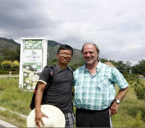 2015年8月,中國雪橇隊在北京延慶組織第一次跨界跨項選材,武大偉和時任國家隊外教沃夫岡合影