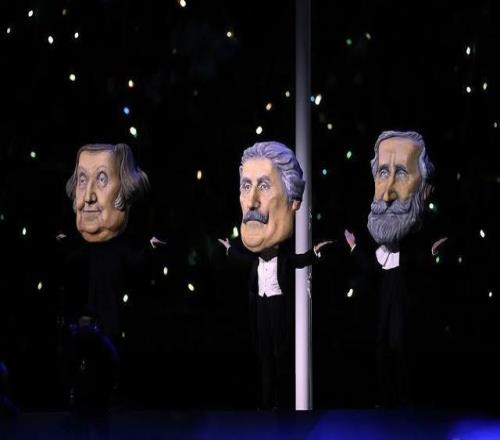 威爾第、普契尼和羅西尼三位意大利歌劇大師跳起歡快的舞步。