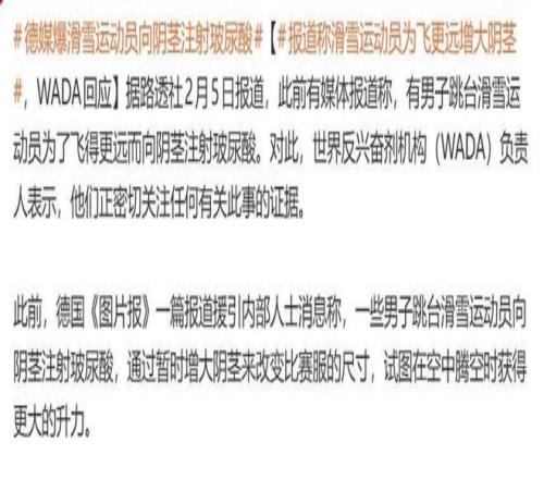 本屆冬奧會才剛開始不久,但已經有了超級離譜的迷惑新聞:一家名叫《圖片報》的德國媒體聲稱,有些男性跳臺滑雪運動員正在偷偷注射玻尿酸增大陰莖,只為改變比賽服尺寸,并在比賽中飛得更遠。