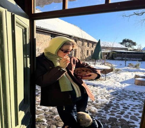 或者用這兩年很火的Barbour油蠟皮谷倉夾克,搭配紅色針織,形成“一剛一柔”的對比。▼