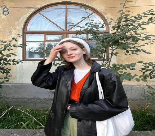 之前也聊過,帥氣利落的麂皮/皮革夾克,能很好地化解緞面裙的隆重感。而且,“橙+棕”本來就是相近色,組合起來很像落日余暉。