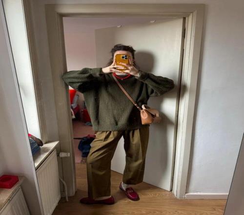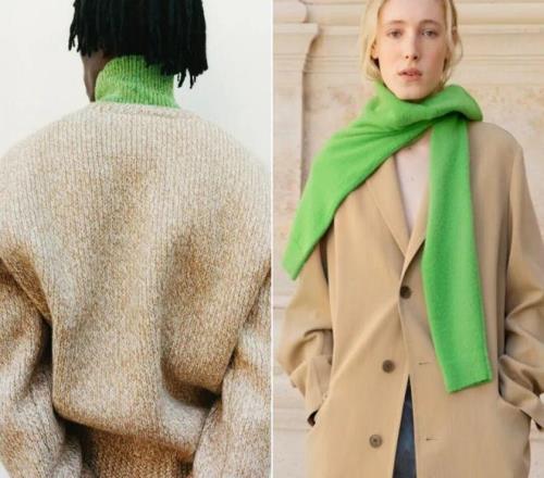很多人家里大概率都有一件棕色外套,只要搭配一件綠色內搭,就能輕松穿出春日感。