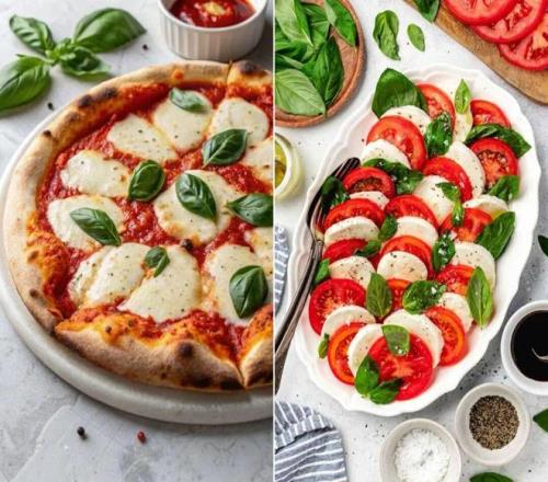 當然,意大利的美食也少不了這對CP:最經典的瑪格麗特披薩(左)、卡布里沙拉(右),也有紅綠配。▼