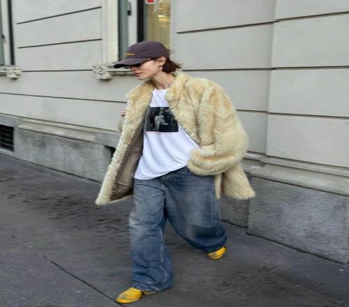 下裝簡單配條牛仔褲,就可以快速搞定“黃藍配”。 ▼