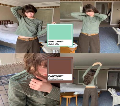 想嘗試這個比例的朋友,建議選綠色上衣+棕色下裝的組合,對亞洲人膚色更友好。