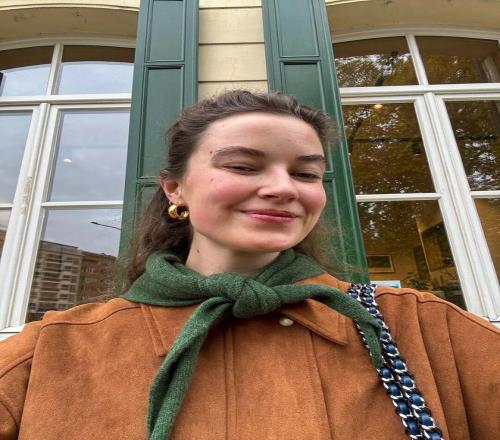 博主charlotte.vandaele的黃色馬甲+藍色襯衫▼