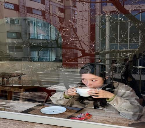 像鄭采妍一樣在卡其棕外套袖口,露出一截綠色袖子。▼