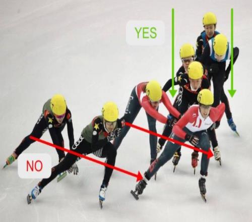 至于“變道”,這在直道是被允許的,但前提是足夠領先,具體標準是變道運動員的臀部必須位于另一運動員肩膀的前方。如果領先沒有這么多,而是在并行時強行把別人擠走,就可能受到判罰。