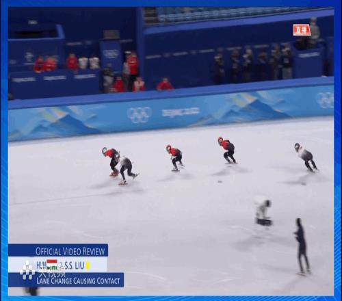 劉少林滑出彎道后,兩次伸出左手阻擋任子威,并造成了干擾,所以被判犯規。