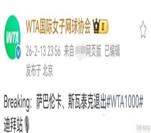 不過,外界在談起迪拜的這股退賽潮時(shí),則讓薩巴倫卡和斯瓦泰克意外成了球迷和網(wǎng)友們的重點(diǎn)調(diào)侃對(duì)象,稱澳網(wǎng)失冠對(duì)白俄羅斯姑娘打擊太大,迄今為止仍未從創(chuàng)傷中緩過來(lái),需要繼續(xù)療傷,退賽完全可以理解。
