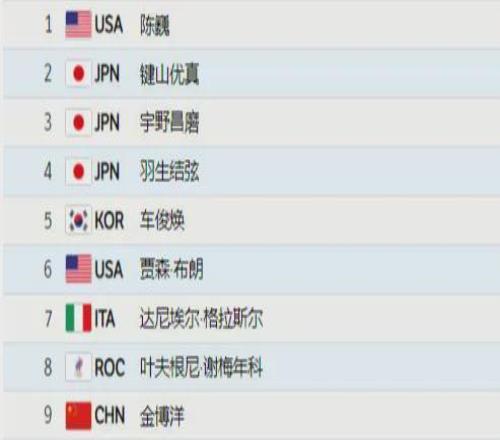 那屆奧運會花滑男單比賽最終的結果如下,冠軍由美國隊的陳巍獲得,我國選手金博洋排名第九,而羽生結弦只獲得了第四,排在他的兩個日本隊友之后。