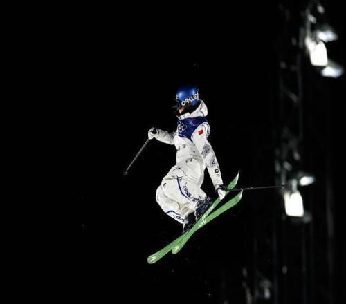 2月14日,中國選手谷愛凌在女子大跳臺比賽中。新華社記者 夏一方 攝