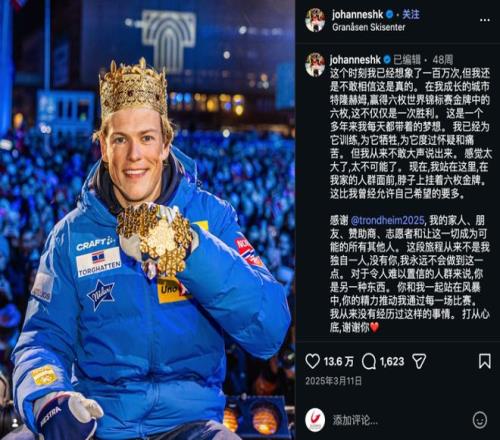 2025年的北歐滑雪世錦賽,特隆赫姆。距離克萊博長大的地方只有5公里。當挪威確定申辦這屆世錦賽成功時,他就開始在日歷上圈出了這些日子。六項比賽,六塊金牌。他成為了這個項目歷史上最成功的男子運動員。那一刻,頭戴王冠的他,仿佛把整個挪威的冬天都披在了肩上。