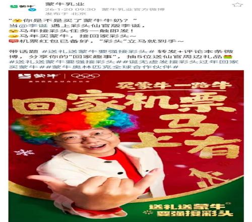 而蒙牛作為雙主場的唯一玩家,用精準的資源整合,完成了春節與冬奧的雙線協同,實現情緒與場景的雙重占領,達到1+1>2的傳播效果。