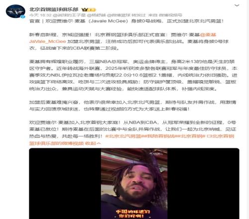 北京時(shí)間2月18日,北京首鋼男籃剛剛官宣麥基將身披0號(hào)球衣為北京男籃出戰(zhàn),他將代表北京隊(duì)出戰(zhàn)CBA第二階段。從NBA到CBA,從三屆NBA總冠軍、奧運(yùn)金牌到CBA全新的征程,麥基將與北京全隊(duì)一同并肩作戰(zhàn)。