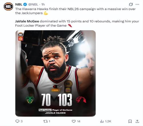 本賽季麥基在NBL場(chǎng)均25.1分鐘,拿到19.3分10籃板2.1助攻0.9搶斷1.8蓋帽,命中率57%,罰球命中率78.4%。麥基留給NBA球迷的印象就是一個(gè)吃餅藍(lán)領(lǐng),但在NBL這種級(jí)別的聯(lián)賽打球,麥基的表現(xiàn)跟文班亞馬相差無幾,也是持球一條龍面對(duì)3人防守暴扣。