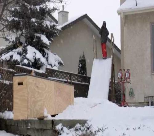 麥克莫里斯父親在自家后院搭了個簡易裝置,滿足兒子們想要練習滑雪的愿望。