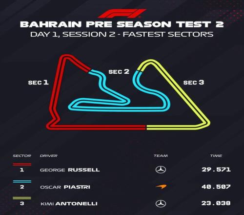 衛冕世界冠軍麥克拉倫在巴林度過了富有成效的一天測試,冠軍車手蘭多·諾里斯和隊友奧斯卡·皮亞斯特里分擔了當天的測試任務。和所有競爭對手一樣,麥克拉倫對其表現守口如瓶,但給人的感覺是他們屬于前四名的車隊,盡管可能不是最快的。諾里斯和皮亞斯特里都表示,在專注于各種短距離和長距離測試、同時探索不同動力單元模式的過程中,他們感覺在賽車里更加舒適了。兩人總共完成了124圈。