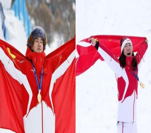 35歲的徐夢桃和22歲的蘇翊鳴,分別在自由式滑雪女子空中技巧和單板滑雪男子坡面障礙技巧項目中站上最高領獎臺。影像定格這一歷史性瞬間,連接起兩個時代,在利維尼奧合成一個故事。