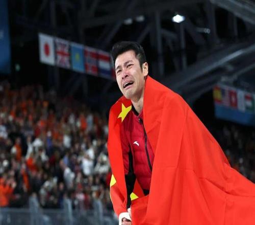確認自己獲勝后,寧忠巖淚灑賽場,他身披五星紅旗緩緩繞場滑行慶祝,觀眾紛紛起身為他歡呼、鼓掌。“這個成績對我來說非常、非常滿意。我的目標是打開(1分)43秒,但我真沒想到自己能滑進(1分)42秒。”他說。