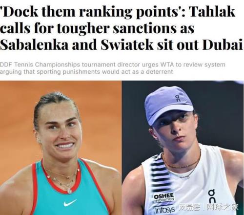 這番言論并非危言聳聽。此前,迪拜賽事總監(jiān)塔拉克在面對薩巴倫卡和斯瓦泰克退賽時就已情緒失控,他公開質(zhì)疑退賽理由“有點奇怪”,并憤怒地表示罰款對于年入千萬的巨星來說如同隔靴搔癢,呼吁WTA應(yīng)當(dāng)對無故退賽的球員實施扣除排名積分的嚴(yán)厲處罰 。