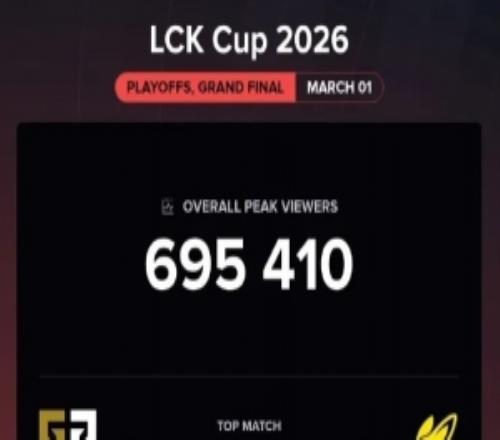 體育資訊3月2日稱 據Esports Charts數據統計,剛剛結束的LCK杯冠軍賽GEN對陣BFX在海外僅有69萬收視率。