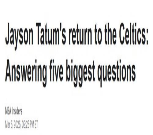 塔圖姆為何選擇現(xiàn)在復出?他的回歸將如何影響總冠軍爭奪?又會如何改變凱爾特人今年夏天的休賽期規(guī)劃?ESPN解答了關于這位2024年NBA總冠軍成員驚人復出的五大核心懸念。