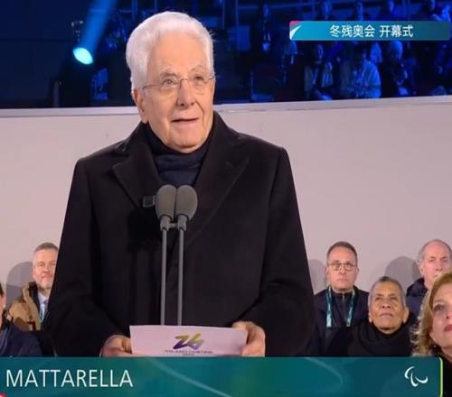 意大利共和國總統塞爾焦·馬塔雷拉(Sergio Mattarella)?正式宣布米蘭-科爾蒂納冬殘奧會開幕。