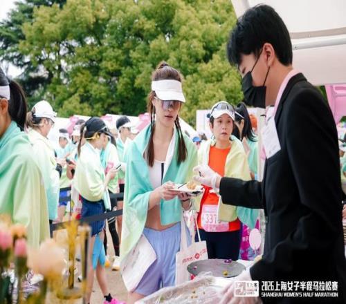 當天正值“三八”國際婦女節,在中山公園終點處,手持鮮花的男士向每一位沖過終點的女性跑者致以祝賀。在公園開闊的草坪上,組委會精心準備了各類精致甜點與清爽飲品,現場還設有專業的美妝美發服務區,幫助完賽跑者快速整理儀容,以最佳姿態記錄這一值得珍藏的時刻,在春光中定格屬于自己的高光瞬間。